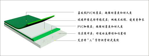 3、玻璃纖維無紡布+PVC加強(qiáng)層結(jié)構(gòu),保證強(qiáng)力運(yùn)動的耐磨需求